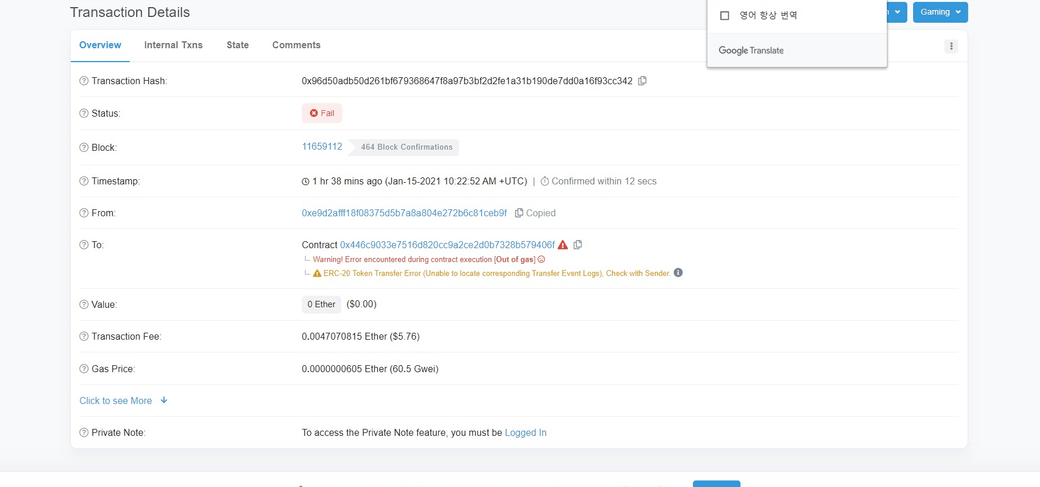 코인을 송금하는데 실패했습니다.