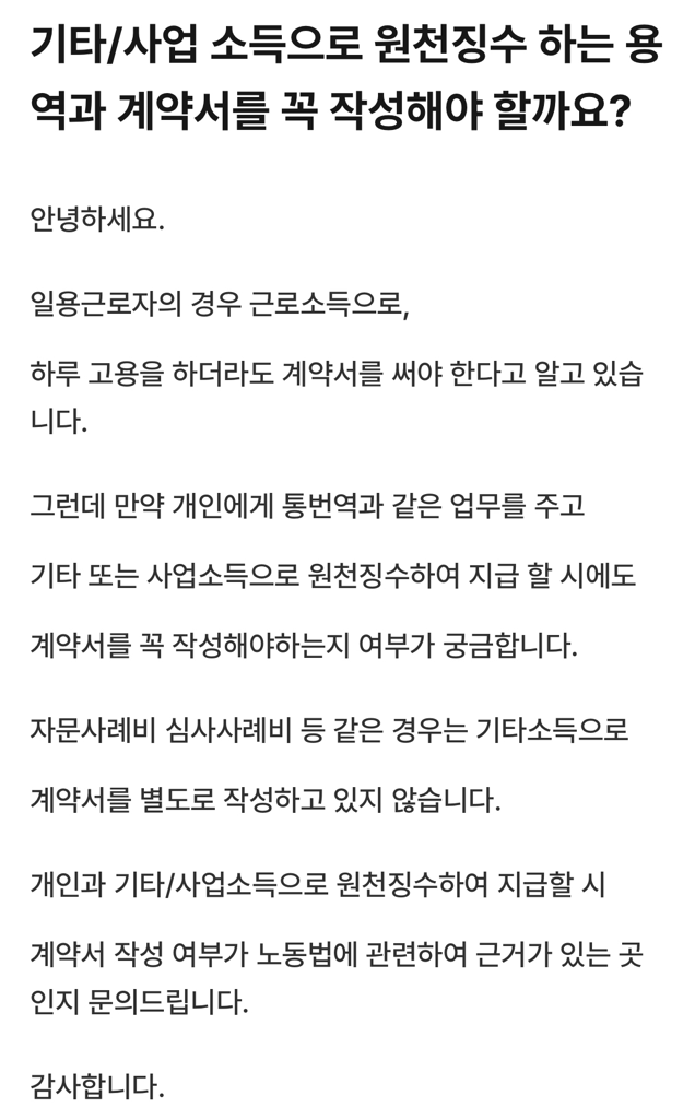 기타소득자나 사업소득자는 직원이 아니기 때문에 위의 규정이 적용되지 않습니다.