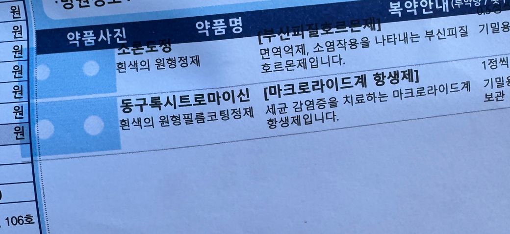 비염 감기때문에 베포쎈정, 제이솔론정, 록스펜정, 원스에어정 이렇게 먹고있는 경우 피부과약의 소론도가 제이솔론과 중복되기에 피부과약의 소론도정은 빼고 함께 복용하길 권장드립니다.