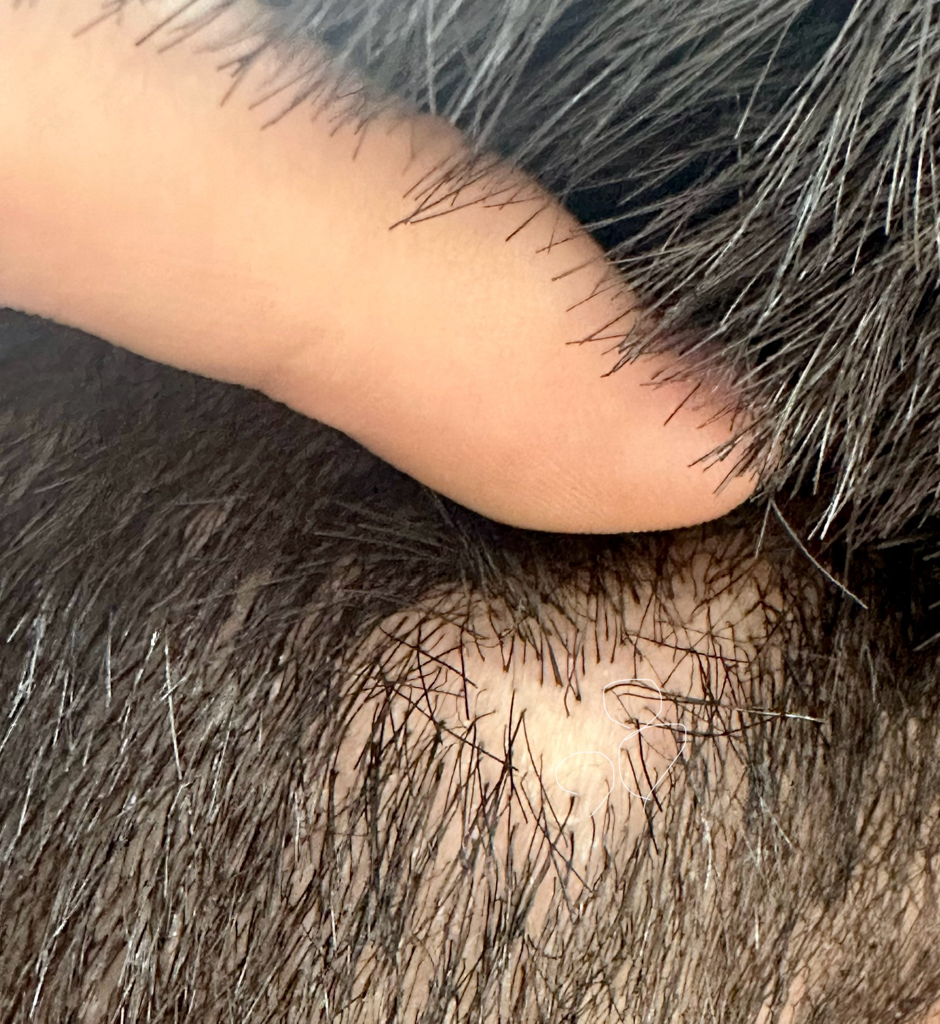 땜빵이라고 이야기 하시는게 상처가 나면서 흉터조직이 남아서 털이 나지 않는 부위를 이야기 합니다.