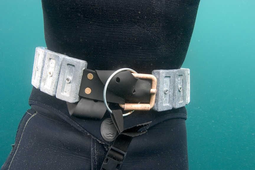 즉, 부력 조절용 BCD 없이 수심 5m 연못 바닥에 80kg의 무게를 부력으로 뜨지 않게 하기 위한 (음성 부력 위한) 웨이트 벨트는 최소 몇 kg 짜리가 필요한가 하는 것입니다.