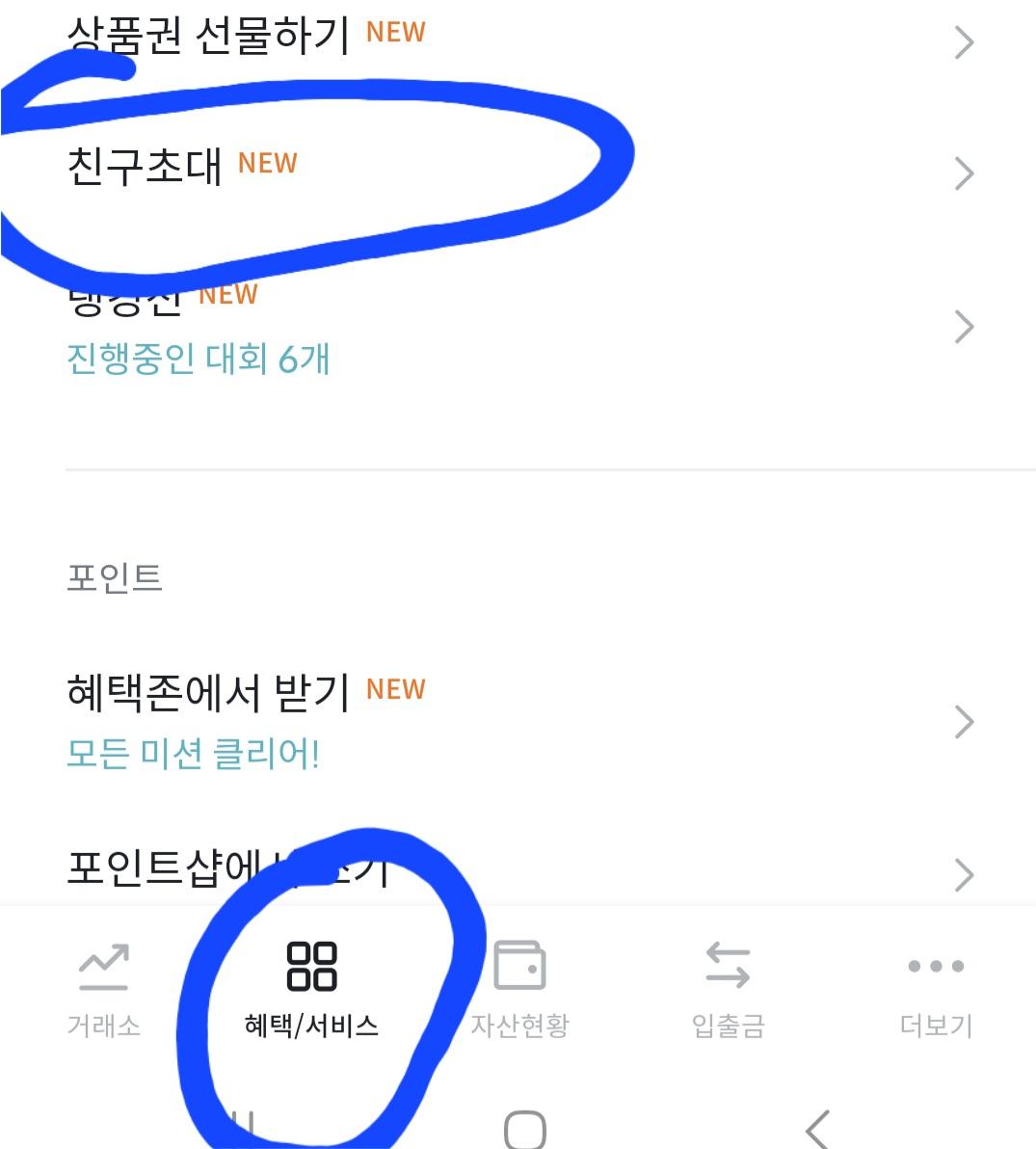 여기서 친구초대하기를 누르면 내 추천코드도 알수있고 초대도 할수 있어요.