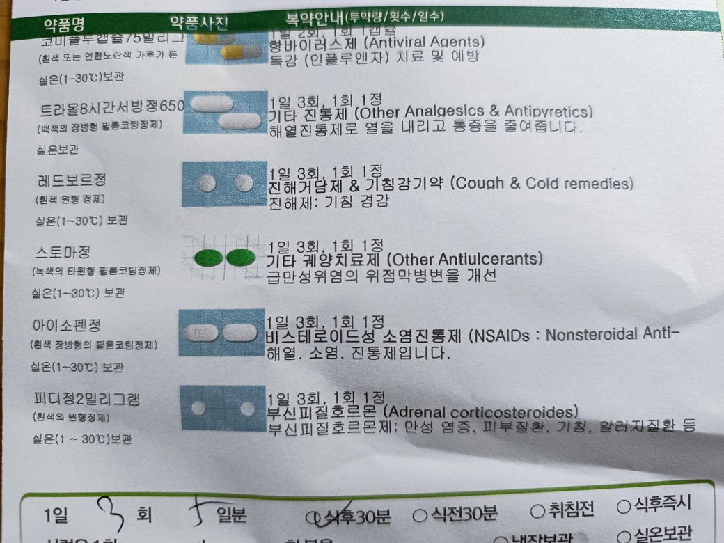 독감 진단받고 약 받아온 것 좀 봐주세요