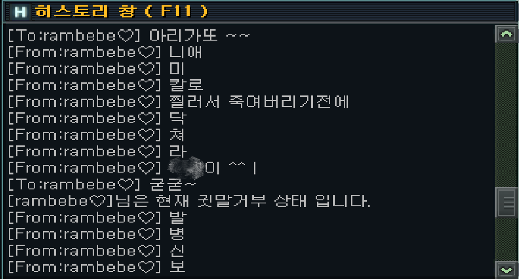 게임 귓속말로 욕을 한 사람은 B입니다.