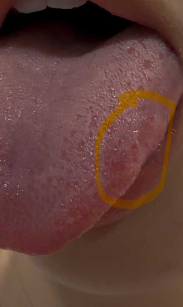 통증을 느낀건 일주일 정도 됐습니다! 중간에 하루 이틀정도 호전되었다가 어제부터 다시 좀 따갑고 통증이 있어요 육안으로 보면 뭐 튀어나온 염증이나 물집 같은 건 딱히 없는 것 같은데 통증 부위에 혀 유두가 두개 살짝 더 빨갛게 튀어나오고 빛 비춰서 보면 다른 부위보다 좀 패인 느낌인 것 같은데 사진 첨부합니다..! 튀어나온 혀 유두는 건들여보면 딱히 아프지 않고 살랑살랑 움직여요 설암 이런건 아니겠죠..