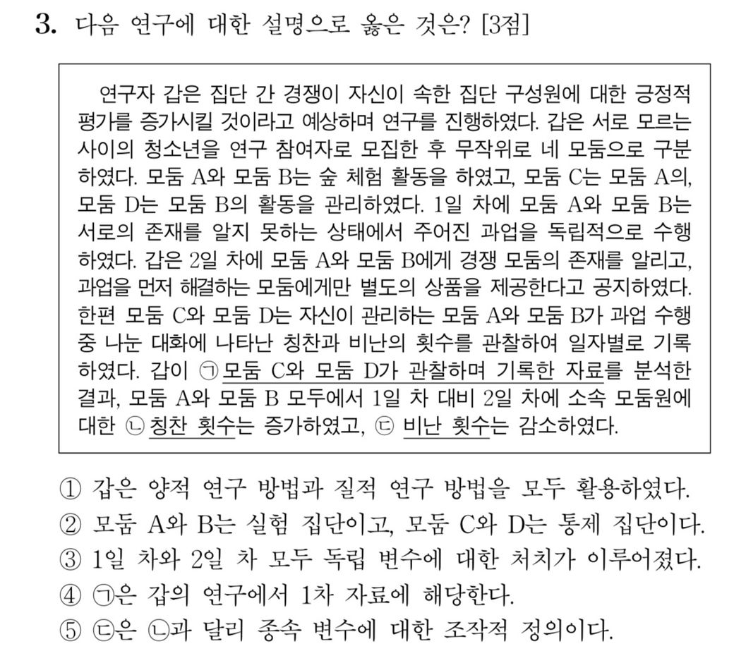 5번 선지에서 ’칭찬 횟수‘가 종속 변수에 대한 조작적 정의인 건 알겠습니다. 그럼 종속 변수는 ’자신이 속한 집단 구성원에 대한 긍정적 평가’이기 때문에 ‘비난 횟수‘는 아무것도 아니라고 봐야 하나요?