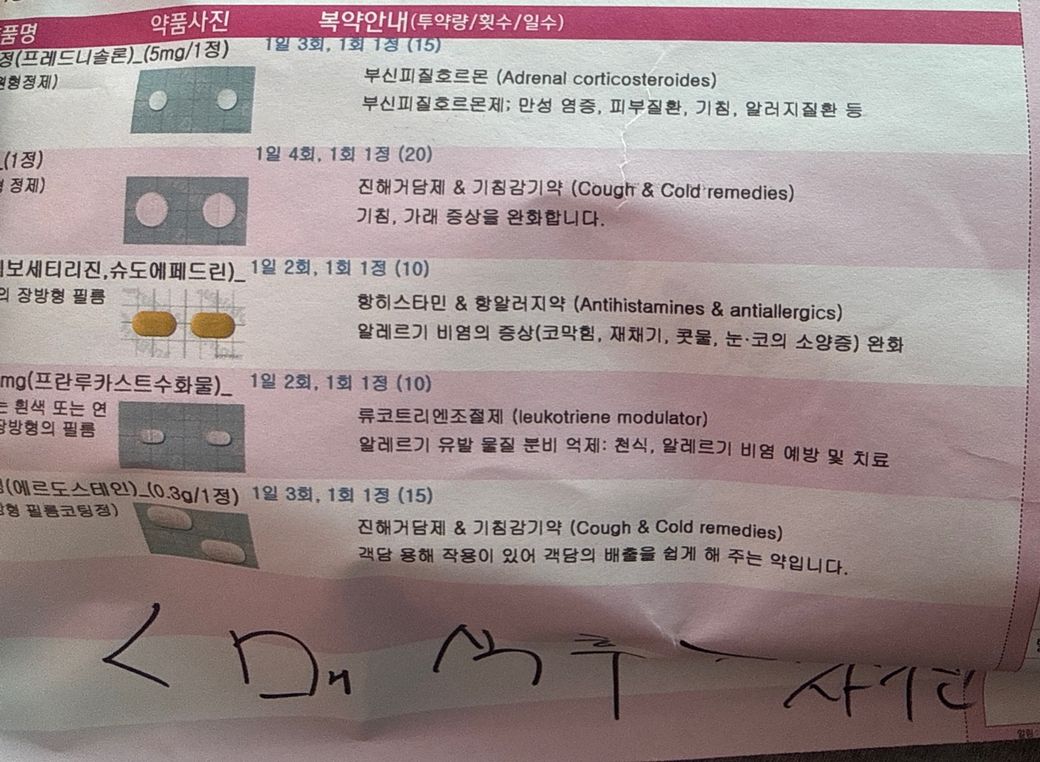 이후 또 낫질않아 10일에 타병원가서 처방 받았습니다만 비슷한 증상으로 비슷한 약을 지어주셨어요 ㅠ 두군데 다 주사 맞았고요