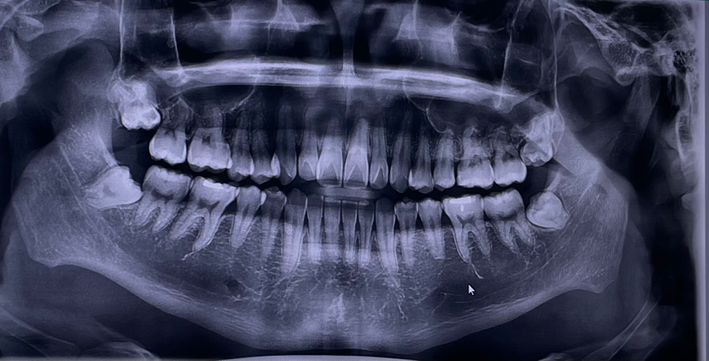 사랑니는 아직 맹출이 되어 있지 않은것으로 보입니다.