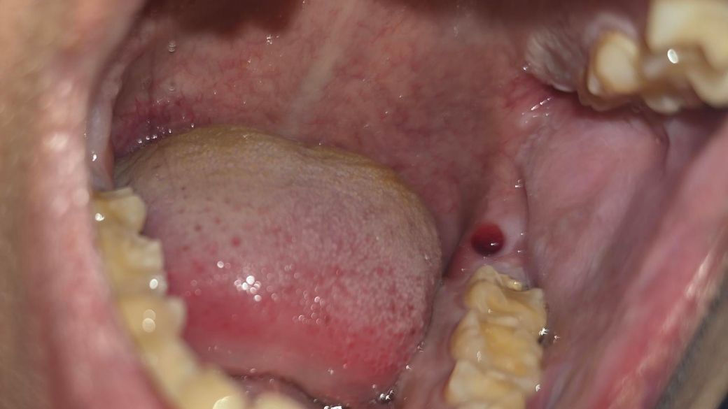 구강암 아닙니다. 단순 물집 수포 입니다. 잇몸에 상처를 입어서 이런 물집이 생깁니다. 저절로 터지니 그냥두면 됩니다. 혹시 터질 때 피가 조금 스며 나올 수도 있습니다.