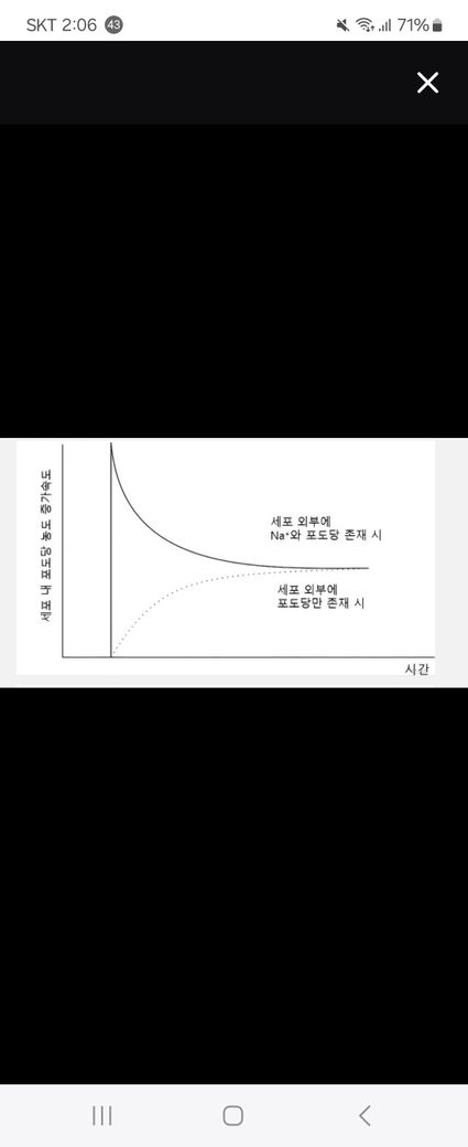 교수님께서 "세포 외부에 포도당만 존재 시(점선)"의 그래프가 포도당이 나트륨 의존성 당 운반이라는 증거라고 하시면서 운반체가 있는 반응은 이 점선 그래프로 설명된다고 하시고 운반체에 의한 촉진확산의 예라고 하셨는데