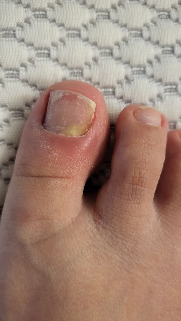 발가락이 욱신거려서 보니 발톱에 하얗게 보이고 주변이 빨갛게 부었네요 통증은 시작된지 얼마 안됐어요..ㅜㅜ