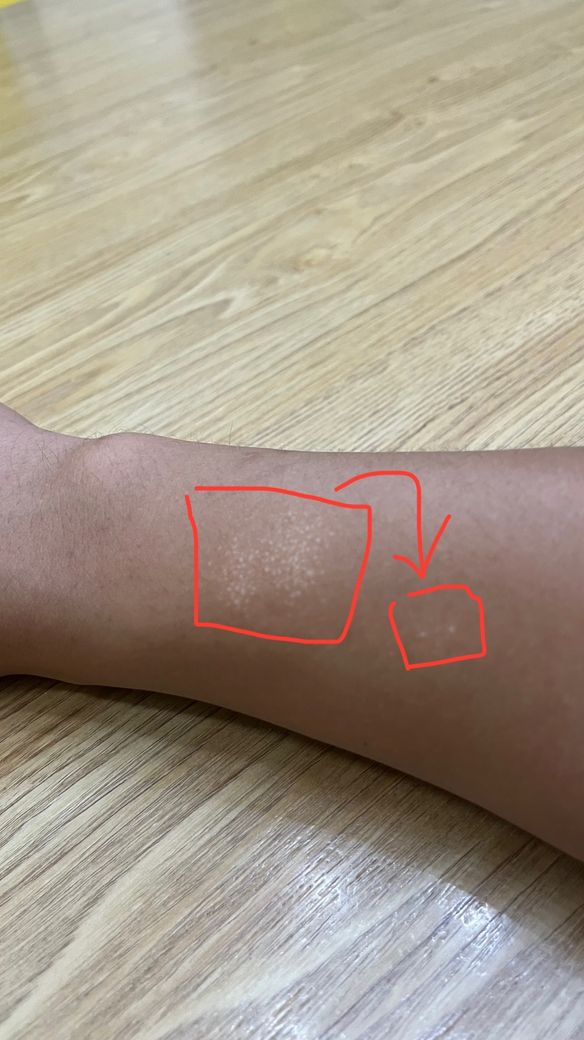 몇달 전부터 팔부위에 빨간 네모부분에 나온 것처럼 흰색에 아주 작은 두드러기? 수포?같은 게 올라왔습니다. 따갑거나 아프진 않고 가끔 간지러운데 만지면 오돌토돌합니다. 근데 이게 요즘 보니 옆으로 조금씩 번지는 느낌이라(작은 네모 부분) 혹시 이게 어떤 두드러기인지, 의료적인 처치가 필요한 것일지 질문드립니다!