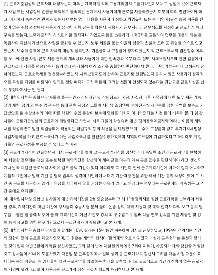 계약을 자유직업소득으로 했지만, 출퇴근을 했고 한 주에 15시간 이상을 근무 했고
