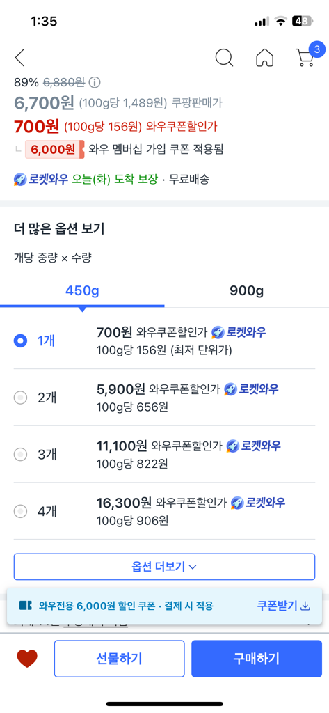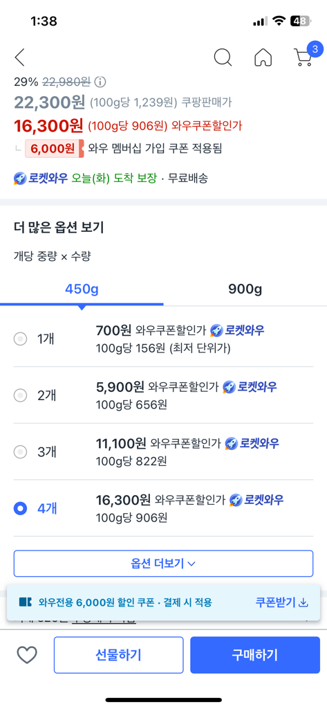 쿠팡 쿠폰이 생겨서 물건을 사려는데 이게 먹을거라서 그람당 으로 보고 제일 싸게 사거든요 근데 4개를 사면 그람당 가장 저렴한데 쿠폰을 쓰면 1개를 샀을때 가장 저렴하게 나오는데 이때 가장 가성비좋게 구매하려면 어떤게 좋을까요?