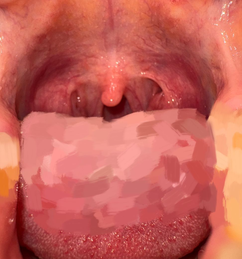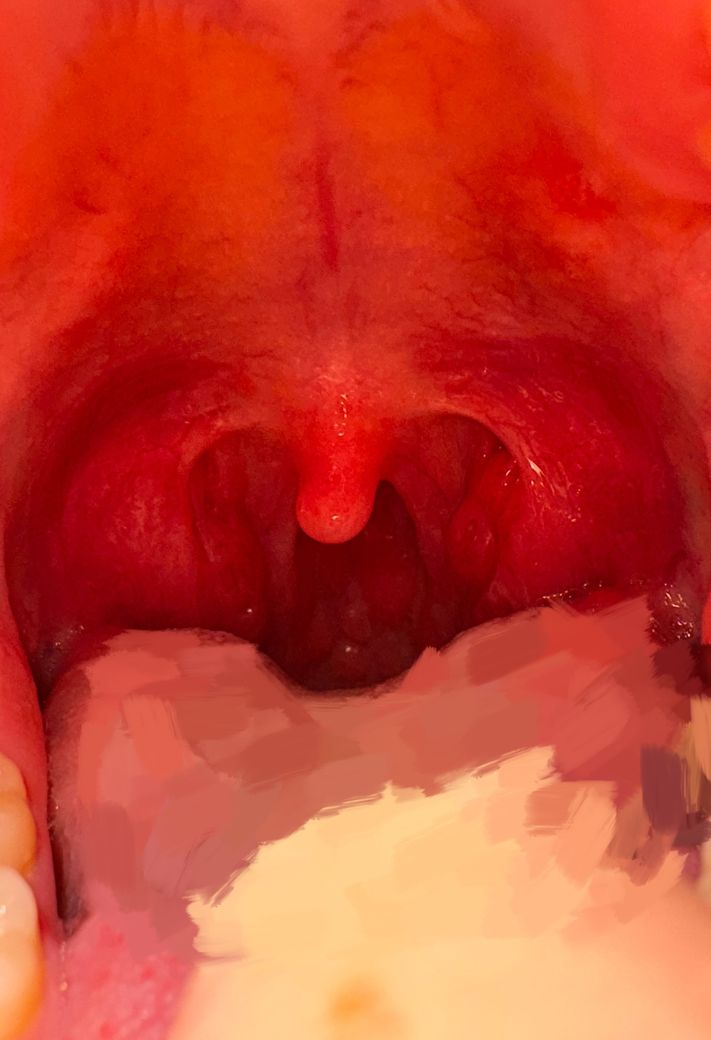 편도가 커진 양상이 관찰되고, 주변부 발적이 보이네요.