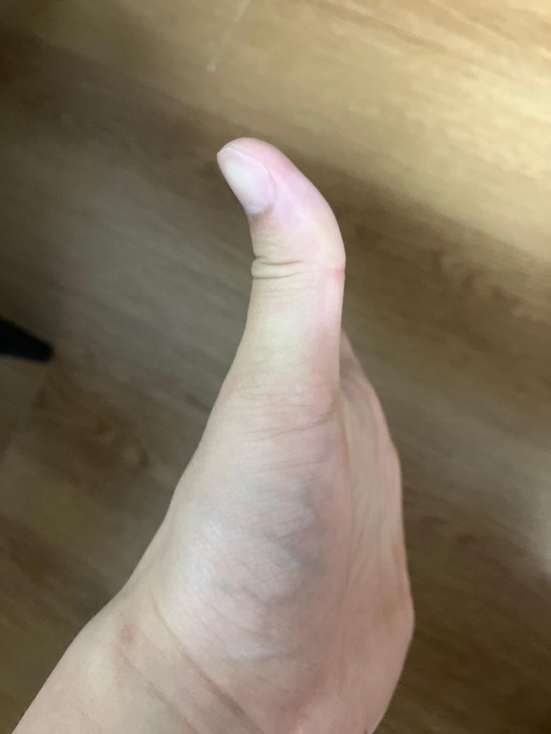 엄지 손가락이 뚝소리나면서 한번에 위치가 바뀌어요
