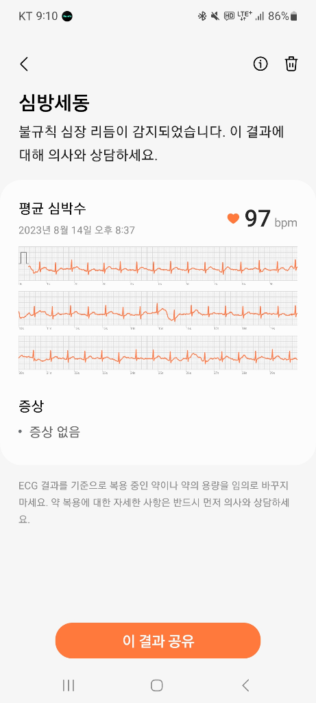 첨부해주신 사진에서 심방세동을 의심할만한 리듬은 없고, 말씀하신대로 기저선(Baseline)이 흔들리는 것 때문에 나온 판독입니다.