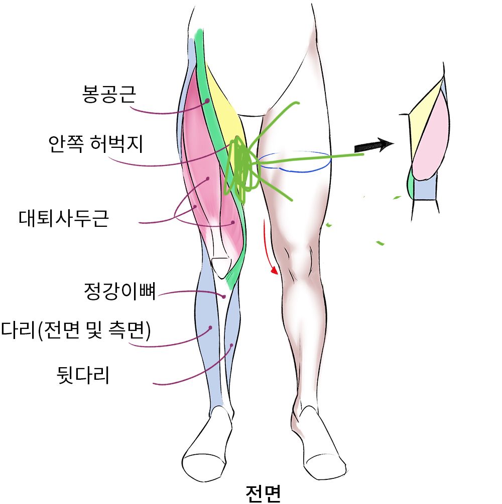 허벅지 안쪽 가운데에 열감이 느껴집니다