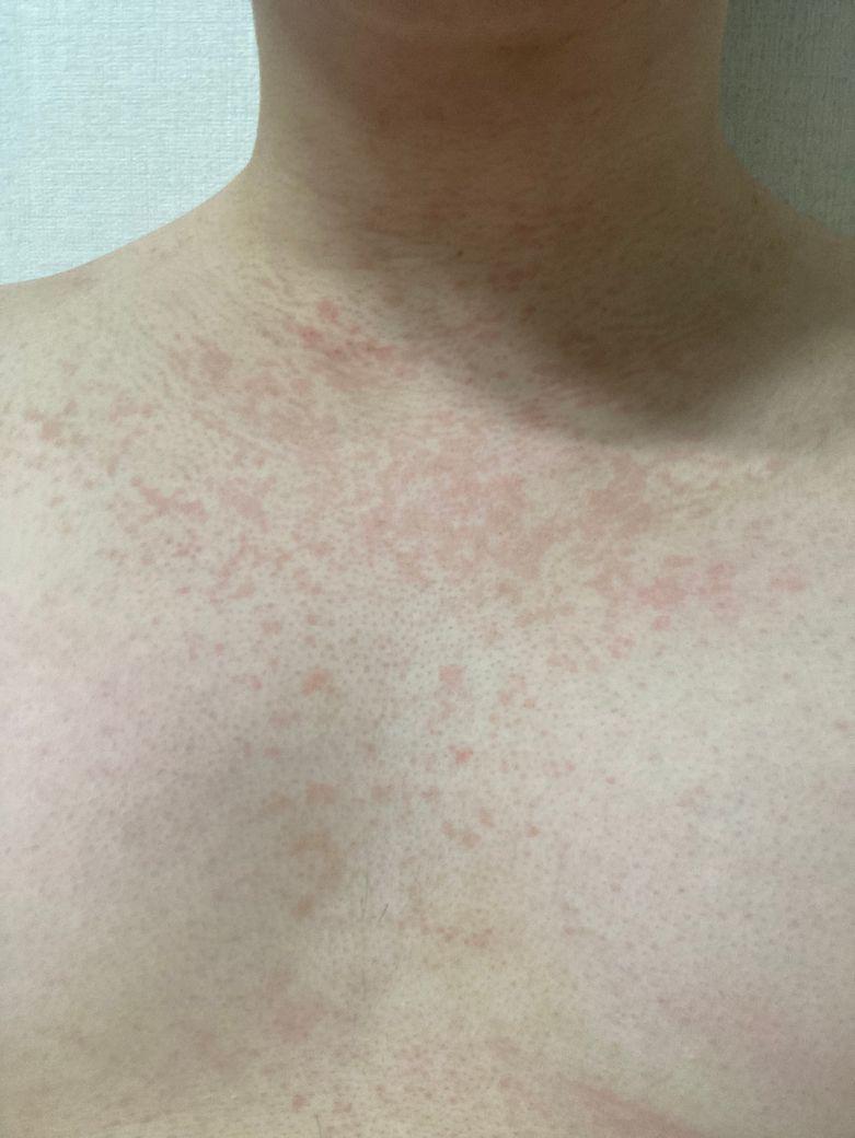 근데 <가슴>쪽에는 그런게 없어서 전혀 바른 적 없고 별다른걸 한적도 없는데 갑자기 이렇게 올라오는데 이게 뭘까요?? 곰팡이인가요? 아니면 땀띠인가요?