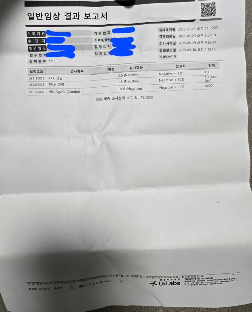 제목대로 저정도 기간이 지난 후에 검사를 받았는데요 HIV 가 4세대? 검사인 것 같더라구요 이정도면 신뢰할만한 검사결과인가요? 근데 HIV 0.06은 뭔가요?