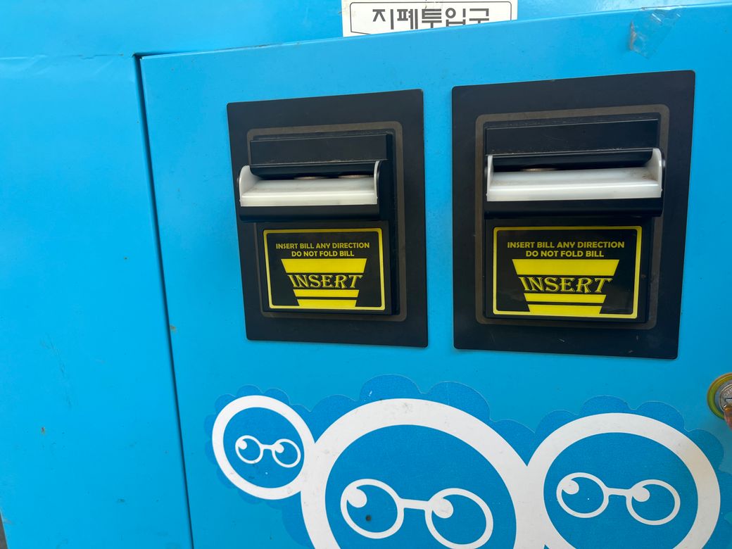 안녕하세요. 인형뽑기 기계 지폐넣는곳에 동전이 들어가서 빼야할 것 같은데, 열 수 있는 방법을 모르겠습니다ㅜ
