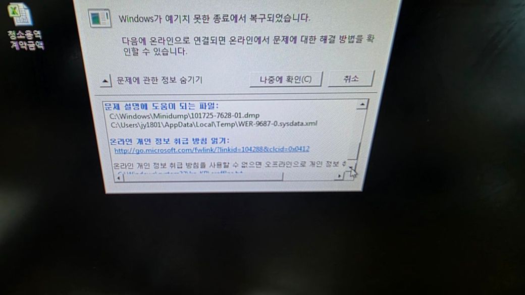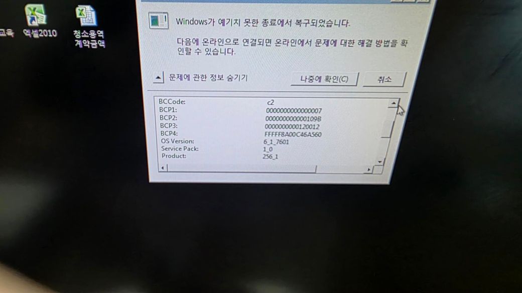 국장님 컴에서 갑자기 블루스크린이 떠서 고치라 하네요ㅜㅜ파일 손상같아요 윈도우7이라 힘드네요 제꺼같음 그냥 하는데 파일 안건드리고 블루스크린 고칠수 있는 방법이 있을까요?