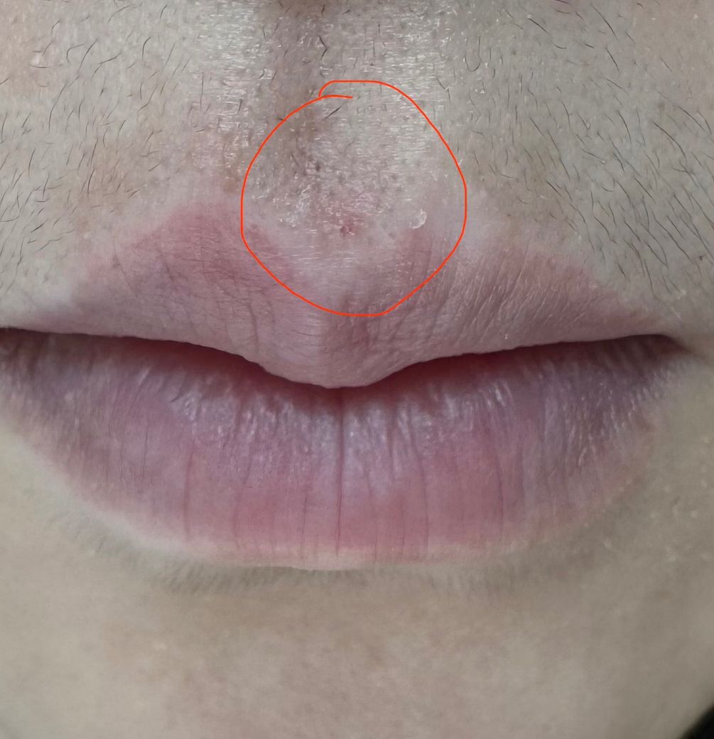 인중에 헤르페스 생긴지 14일차인데요. 자다가 아이가 제 얼굴쪽으로 굴러왔거든요. 제 입술에 닿은지는 모르겠는데 가까이 있었어요. 제가 누워있던 이불에 눕기도 했구요. 이런 경우 옮나요..? 사진은 현재 병변이고 수포나 딱지는 없구요. 약간의 붉은기와 홍반? 같은것만 있어요.