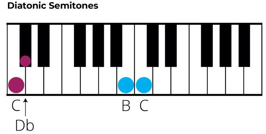 그런데 세 번째 그림에서 C-Db가 온음계적 반음이라고 말하고 있는데요