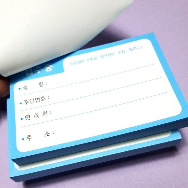 병원에 내원하면 보통 위와 같은 접수증에 인적사항을 적도록 안내를 받습니다.