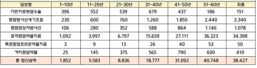 - 일반항암약물, 방사능 외 추가적인 표적항암, 카티항암 등의 항암담보는 추천드리지 않습니다.