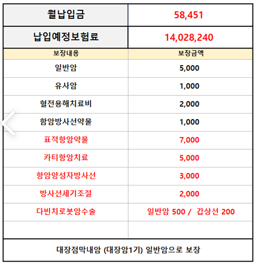 - 해당 치료는 모든 암에 시행되거나 모든 암환자한테 시행 할 수없기 때문에 확률상 납입대비 큰 도움을 못받을 수 있습니다.