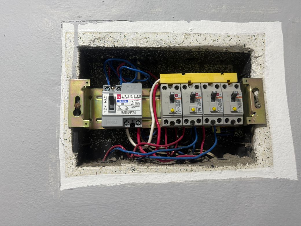 3번째차단기는 거실(2구 콘센트 2개) 베란다(2구 콘센트 1개) 큰방(2구 콘센트 2개) 보일러 컨트롤러 1개
