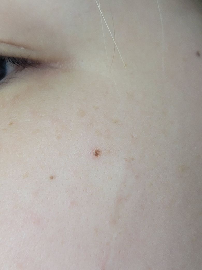 붉은 끼가 가라앉은 지금도 만지면 그냥 점과는 다르게 딱지 진 것처럼 표면이 다르고 따가운 통증이 느껴지네요