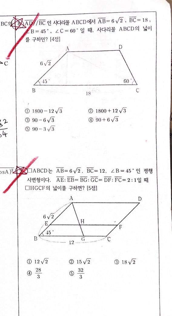 중3입니다. 시험 범위는 삼각비, 원, 통계입니다.
