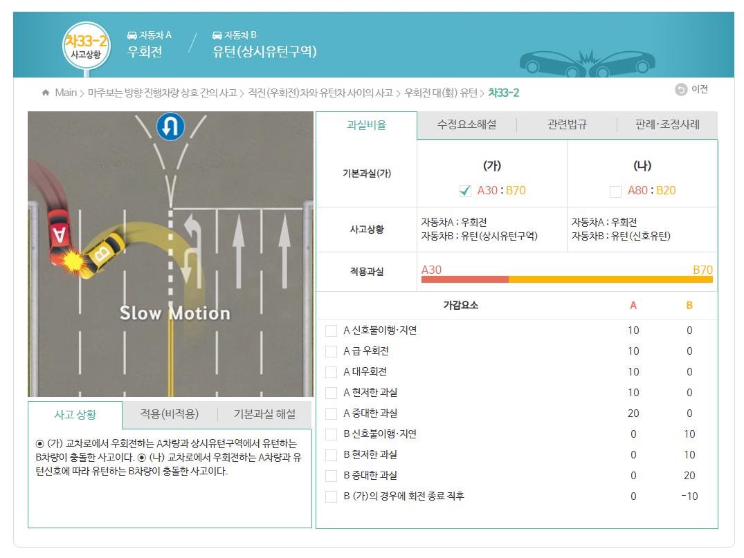 상시유턴구관과 우회전차량 사고 과실비율