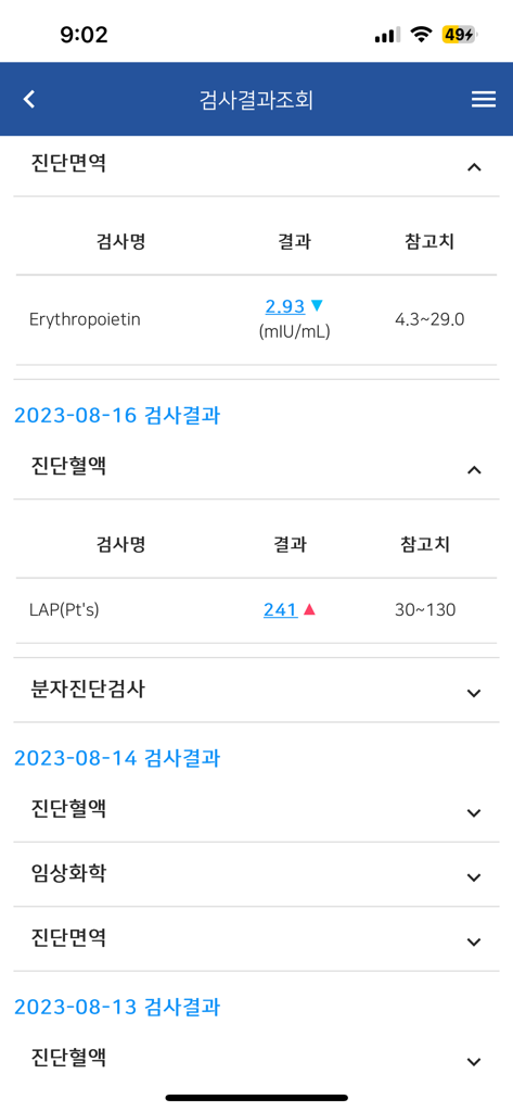 안녕하세요. 이욱현 의사입니다. 질문하신 내용들은 혈액내과 진료를 통해서 종합적으로 판단해야할 내용으로 보입니다. 검진 항목의 개별 사항에 대한 해석보다는 검사 결과를 가지고 가셔서 혈액내과 상담을 우선으로 받는 것이 더 나을 것으로 보입니다.