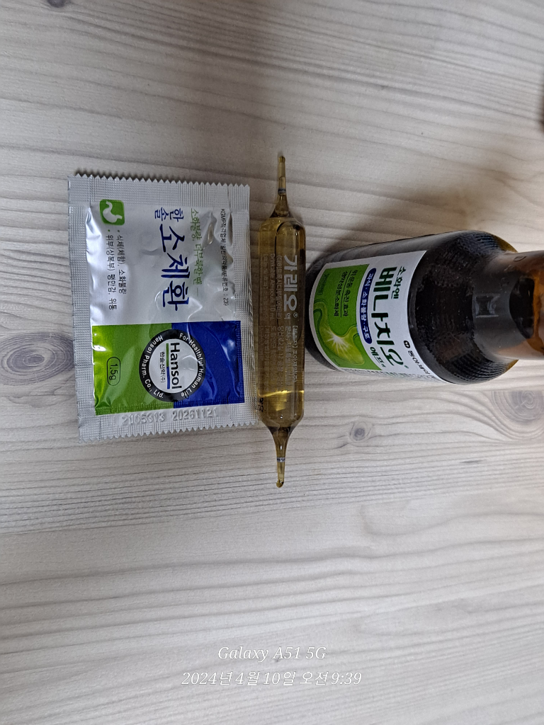 가레오 액 1개, 소체환 1포, 베나치오 소화제를 함께