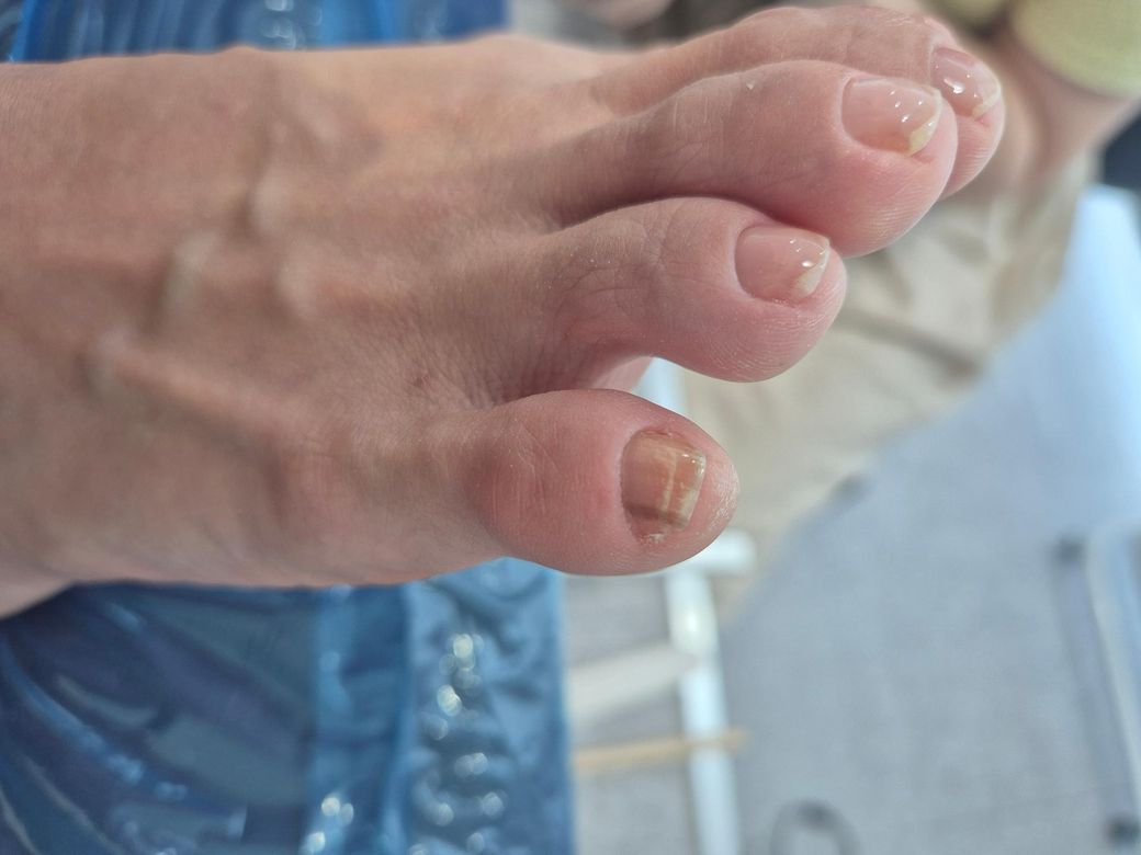 그동안 메니큐어가 칠해져있어 모르고 있다가 오늘보니 새끼발톱에 검정 세로줄이 생겨있어 흑색종인가 싶어 걱정이 되어 문의드립니다. 단순 무좀이나 흑색조갑증 등의 증상일 수 있을까요? 어떻게 보이시나요? 악성일까봐 걱정이됩니다.