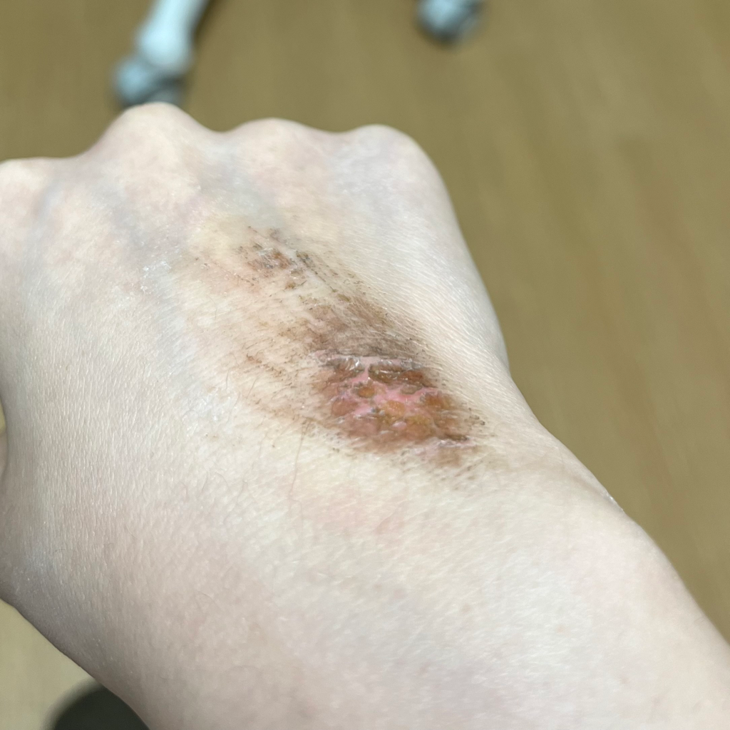 사진에서는 상처가 거의다 아물고있어보입니다. 단순소독및 연고치료를 하면서 지켜보는것을 추천드립니다. 습윤밴드는 안붙이셔도 됩니다