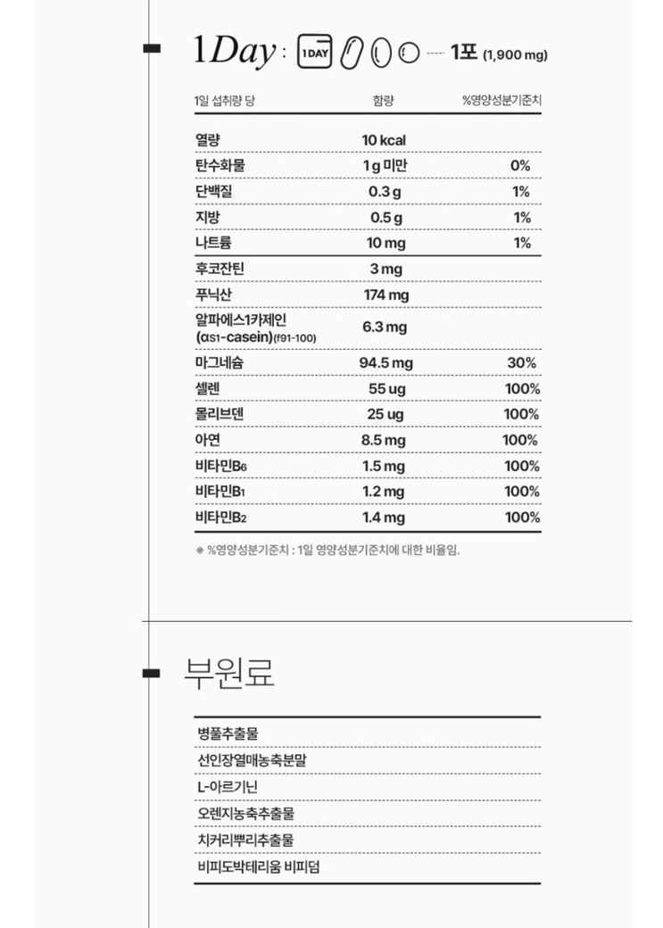 두 제품 영양성분표 함께 첨부합니다:)