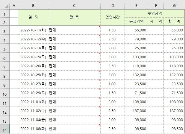 이러한 단계를 따르면 특정 요일별 매출을 비교할 수 있습니다. 필요에 따라 다양한 함수와 조건을 사용하여 원하는 결과를 얻을 수 있습니다.