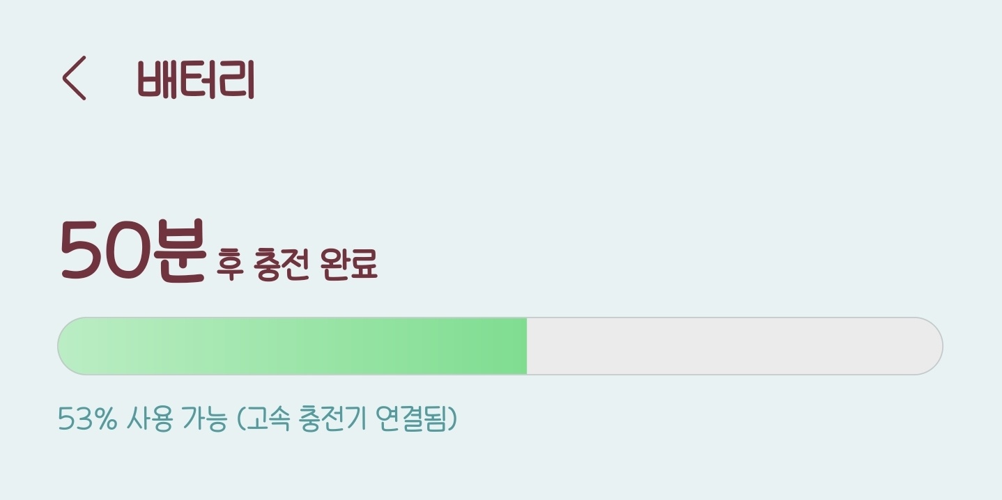 3) 이 세 가지가 모두 맞다면, 설정 > 배터리를 보면 아래와 같이 현재 충전이 어떤 충전 상태인지 뜹니다. (갤럭시 기준)