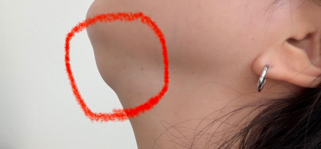 사진 부위는 턱 끝(이하선·악하선이 아닌 정중앙) 아래, 흔히 ‘턱밑(submental) 부위’입니다.