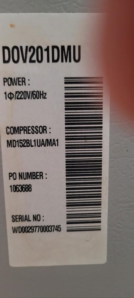 라벨에 있는 D0V201DMU와 시리얼 넘버 WD0029770003745를 제조사 고객센터에 제공하면 생산날짜 알수 있어요