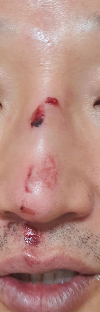 지구대직원이랑 .(신랑은 얼굴에 콧등과 입언중부위 뜯기고 피나 있었슴) 끼고 있었던 안경도 분산됙고안보임..지구대는 모른다함
