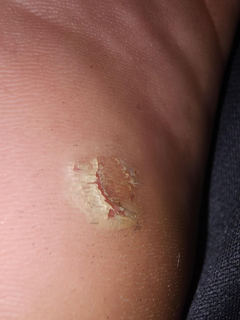 네, 상처부위를 보호하는 목적으로 양말착용이 어느정도 도움이 될 수 있으나, 각질층은 회복과정에서 자연스럽게 탈락하는 경우도 있으므로 별다른 증상이 없다면, 크게문제가 없을 가능성이 높습니다.