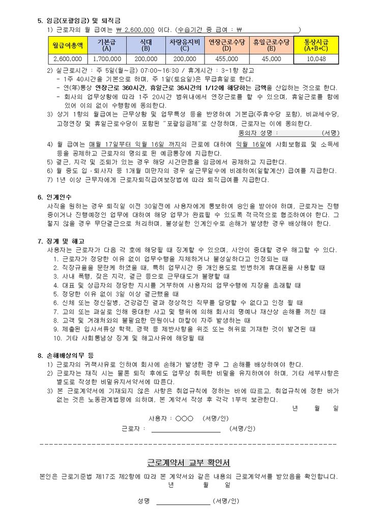 추가 연장근로가 올해까진 계도기간으로 알고 있어 내용에 넣었고, 급여항목 또한 최대한 상세하게 넣고자 했는데 혹시 문제 되는 부분이나 보완할 부분이 있는지 검토 부탁드립니다.