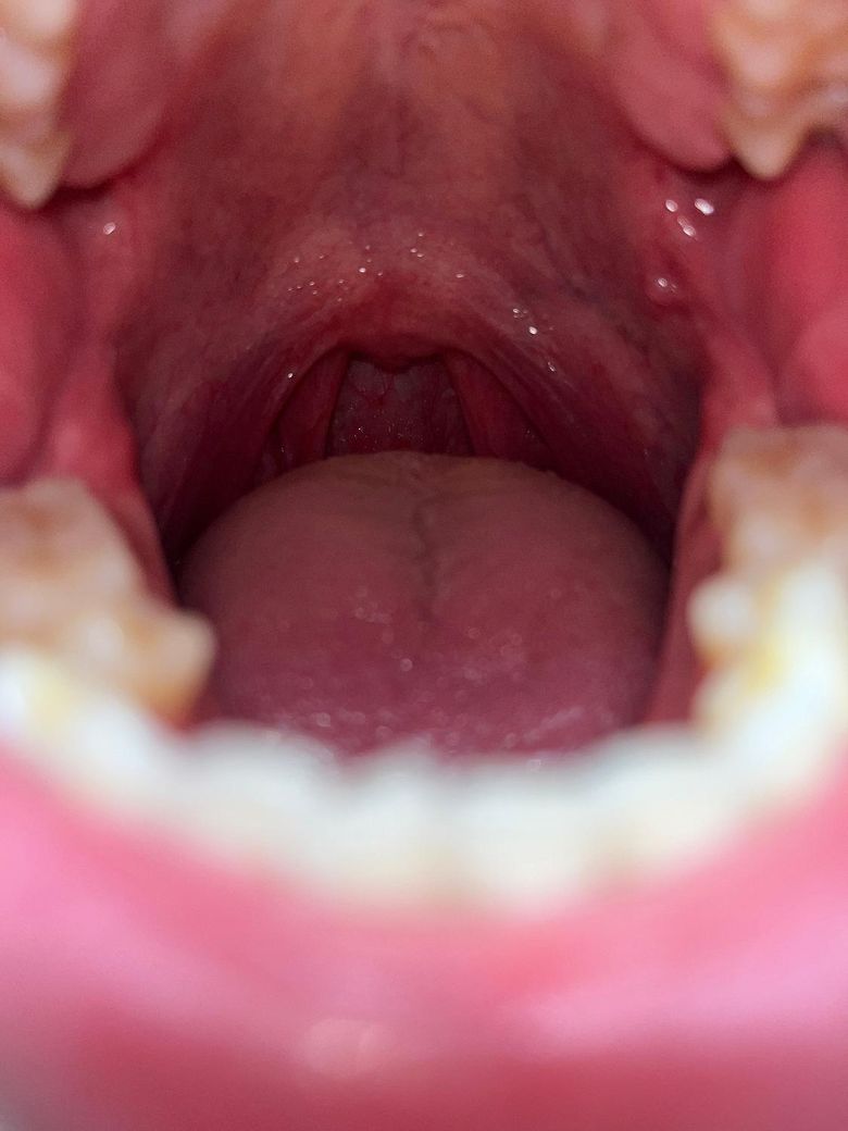 경미한 점액낭종이나 구개융기의 가능성이 높습니다. 타액 분비샘이 막히거나 손상되면 말랑한 낭종이 형성되는데 눌렀을 때 약간 아프거나 투명한 액체가 나올 수 있습니다. 선천적 또는 점차 생기는 단단한 뼈 돌출인 구개융기는 통증이 없고 표면이 매끄럽고 단단합니다. 드물게 자주 자극을 받는 부위에 생기는 구강섬유종이나 양성종양 가능성이 있는데 점차 커지는 경우에는 병원에서 절제가 필요합니다. 네뷸라이저 사용 이후 입안 점막이 자극되어 일시적인 염증 및 부종이 생긴 것일 수도 있습니다.