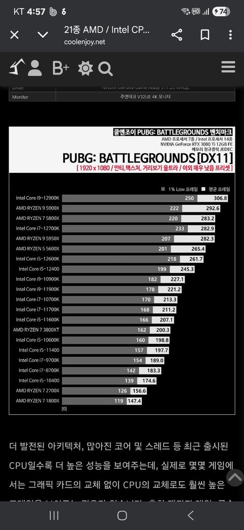 사실상 배그는 cpu가 매우 중요한 게임이고 사양이 점점 높아지고 있어