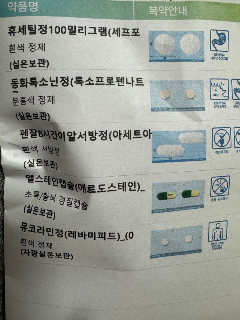 일단 병원에서 말한대로 휴세틸정을 빼고 드셔보세요.